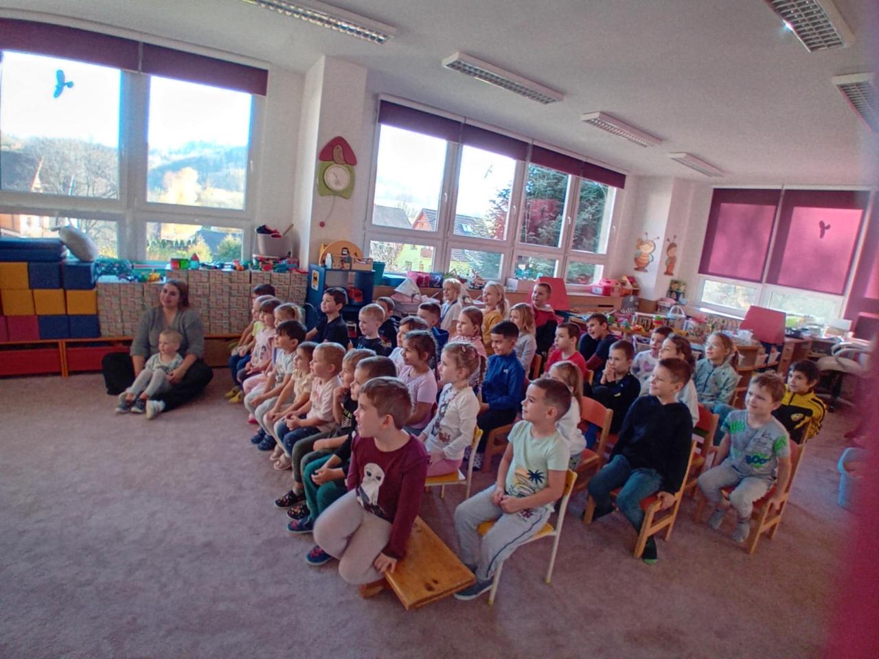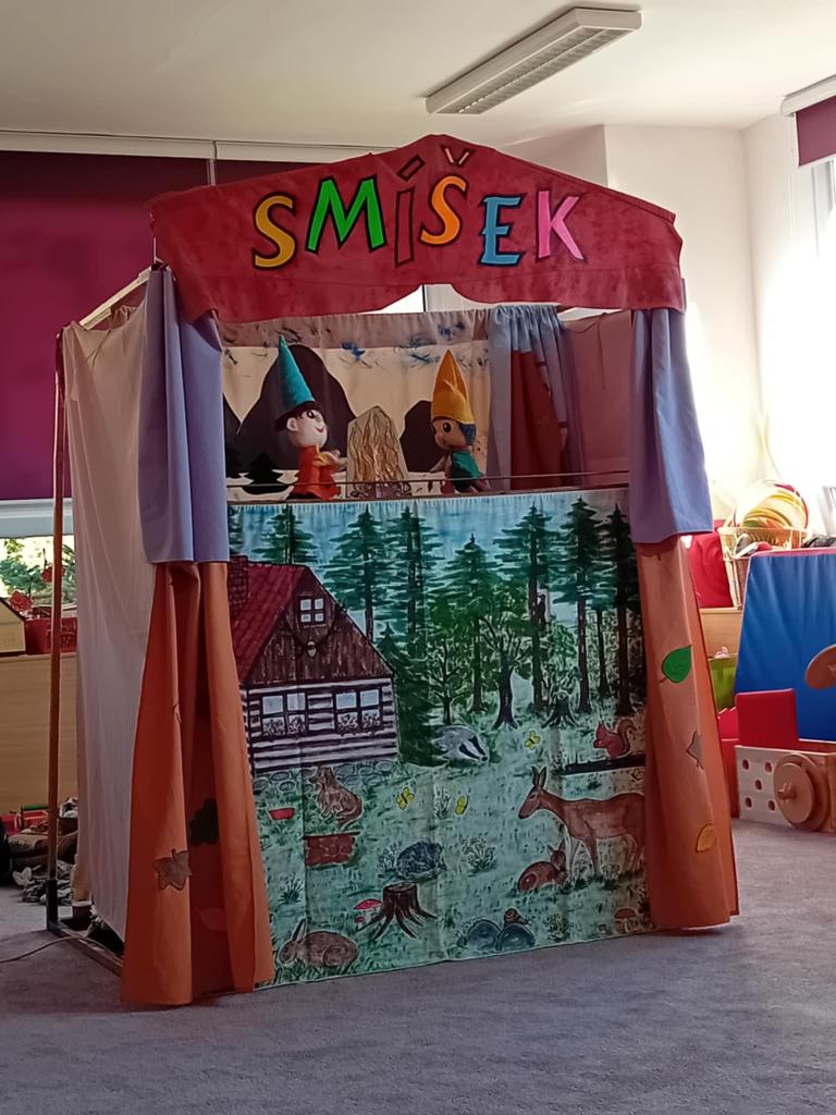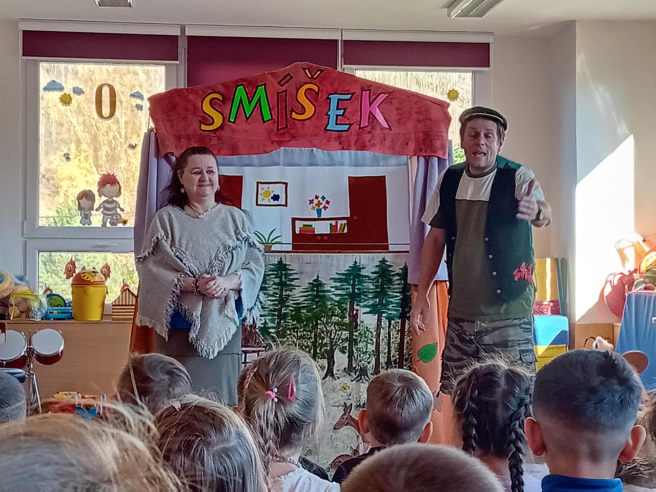 Ve čtvrtek 6. 11. 2025 mateřskou školu navštívilo divadélko Smíšek. Na představení „Trpasličí pohádka“ jsme přivítali také naše kamarády ze základní školy.