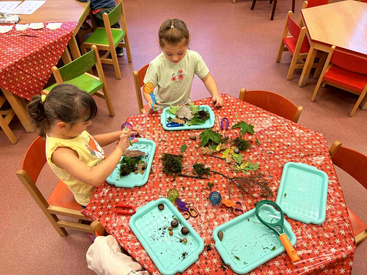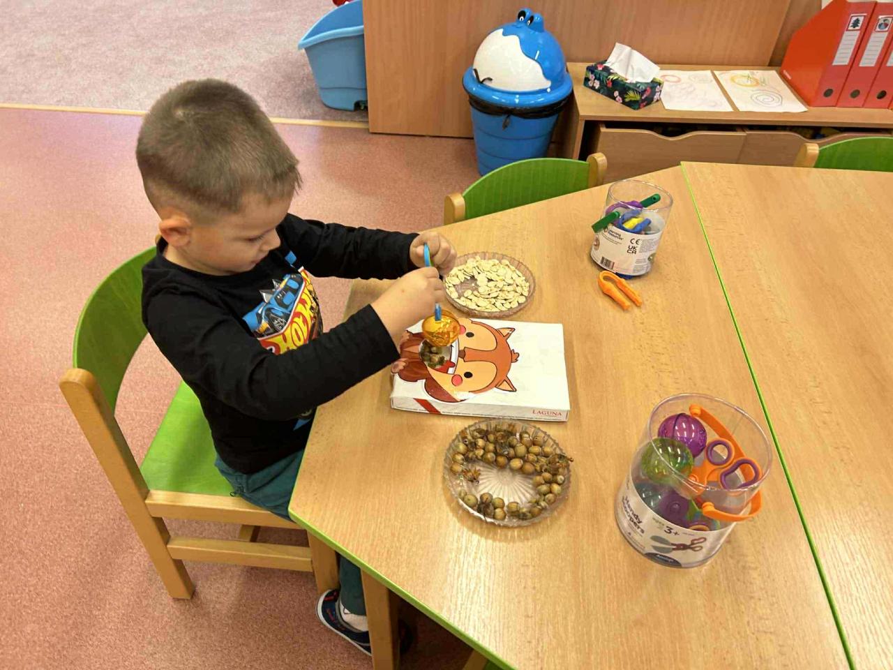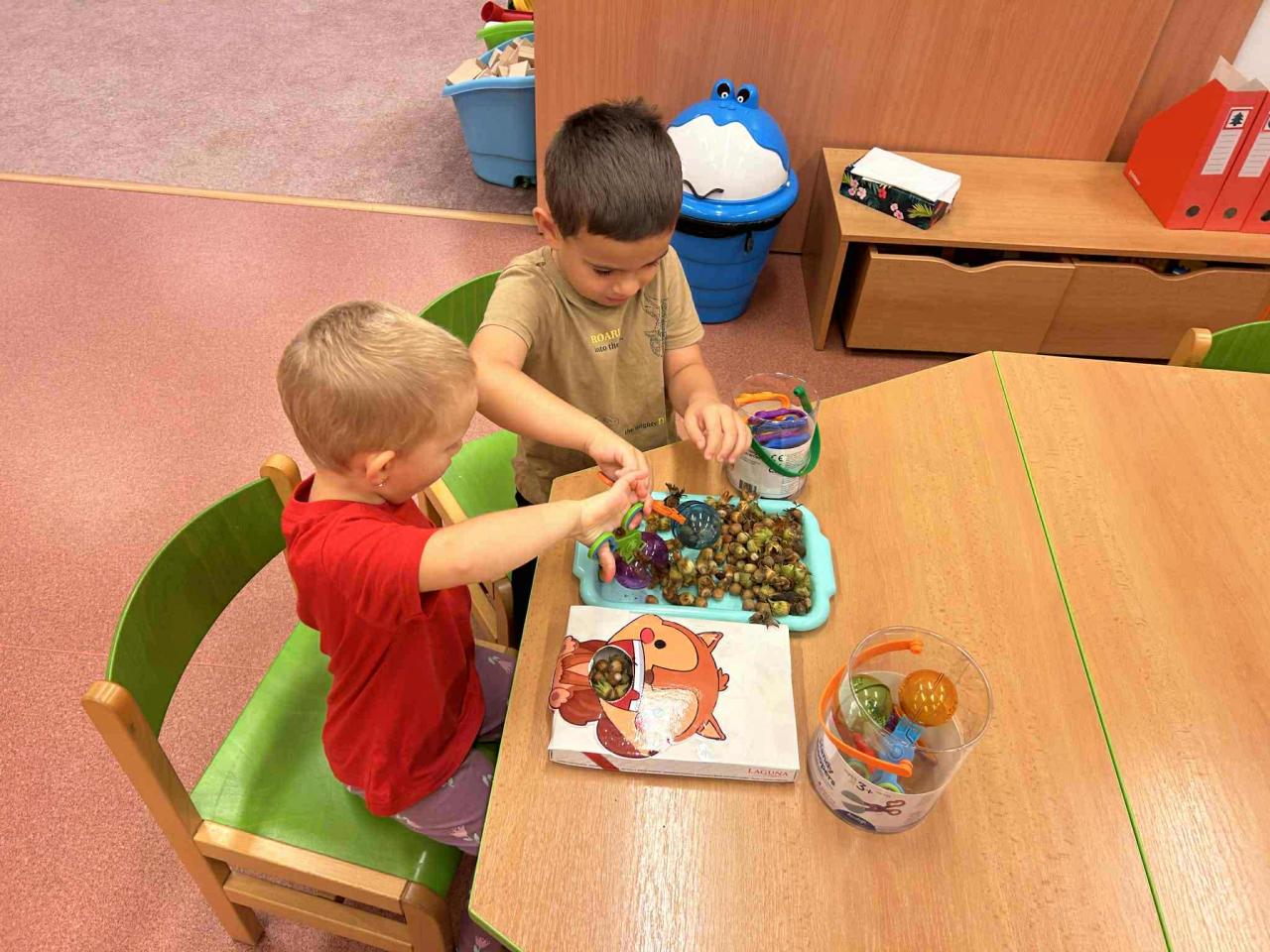 Víme, že lesní zvířátka jsou různorodá a mají svá jména. Nejvíce nás zaujala veverka a její sběr oříšků. Hráli jsme si houbaře a sbírali jsme pouze hříbky, které známe. Naštěstí si pro hřiby nemusíme chodit daleko, protože nám spoustu druhů roste na naší zahradě MŠ.