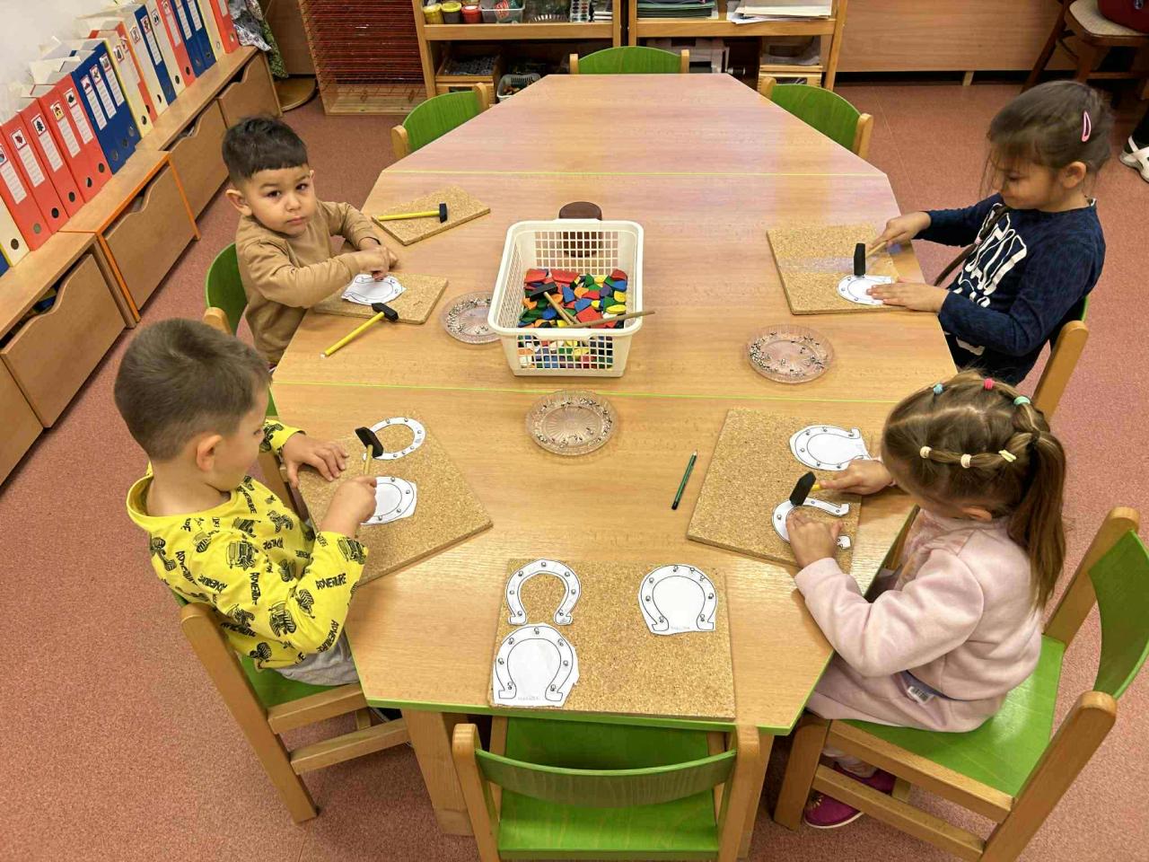 Od 10.11.-14.11. 2025 u nás ve školce probíhal “SVATOMARTINSKÝ TÝDEN”, kde jsme si s dětmi zdobili peříčky husu, navlékali hřívu, kovali podkovy a hlavně hodovali. Nasávali jsme atmosféru ze všech stran.