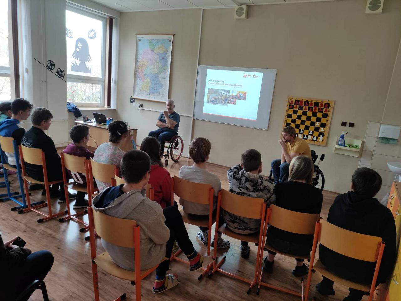 Besedu vedli ambasadoři Pavel Brož a Radomír Krupa, kteří otevřeně hovořili nejen o svém handicapu a o životě na vozíčku, ale především cílili na prevenci úrazů dětí a mladistvých s takto vážnými životními následky.