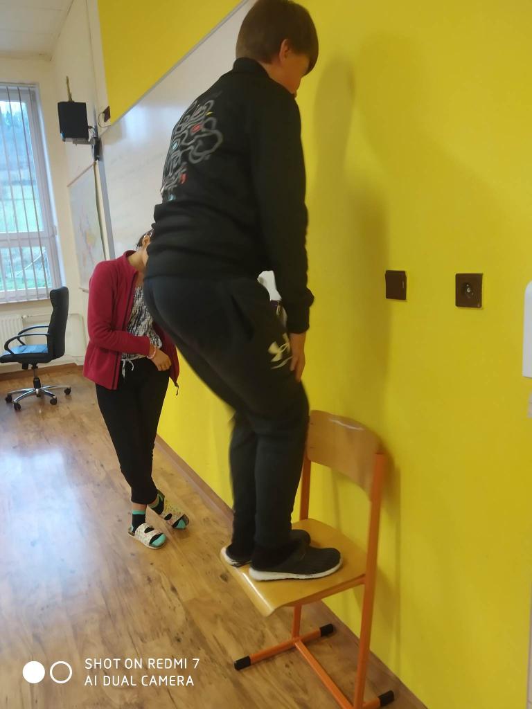 Na závěr kapitoly, která se věnovala energii, se žáci 8. ročníku rozhodli určit velikost výkonu při vystupování a při vzpírání. Průběh měření připomínal hodinu tělesné výchovy. A kdo se nezapotil při měření, ten to dohnal u výpočtů.