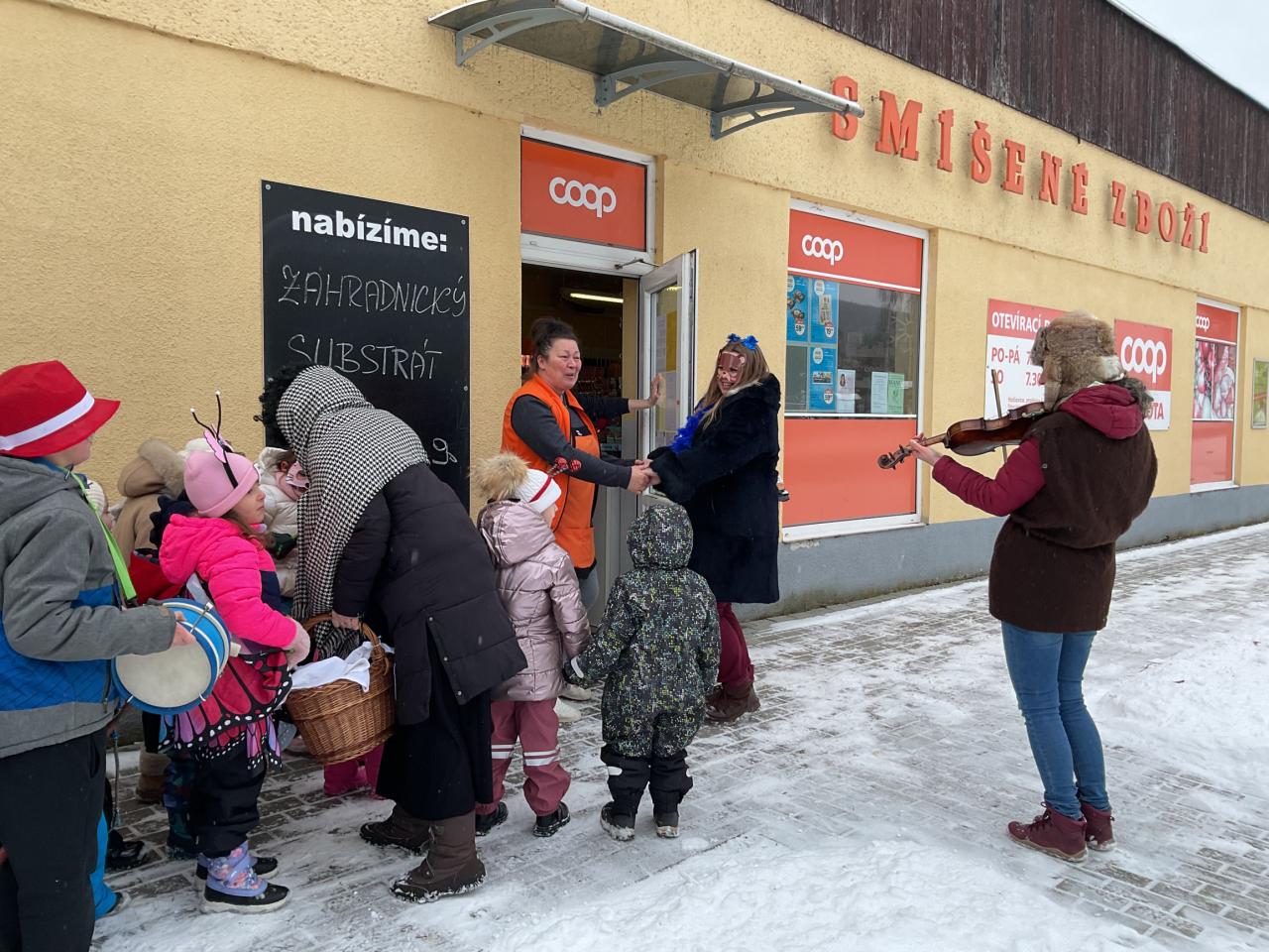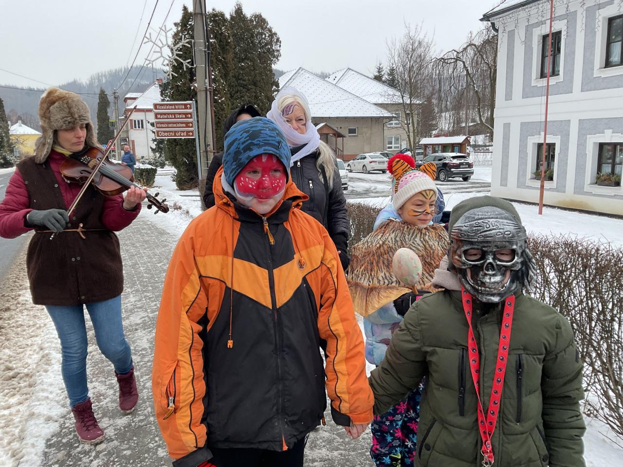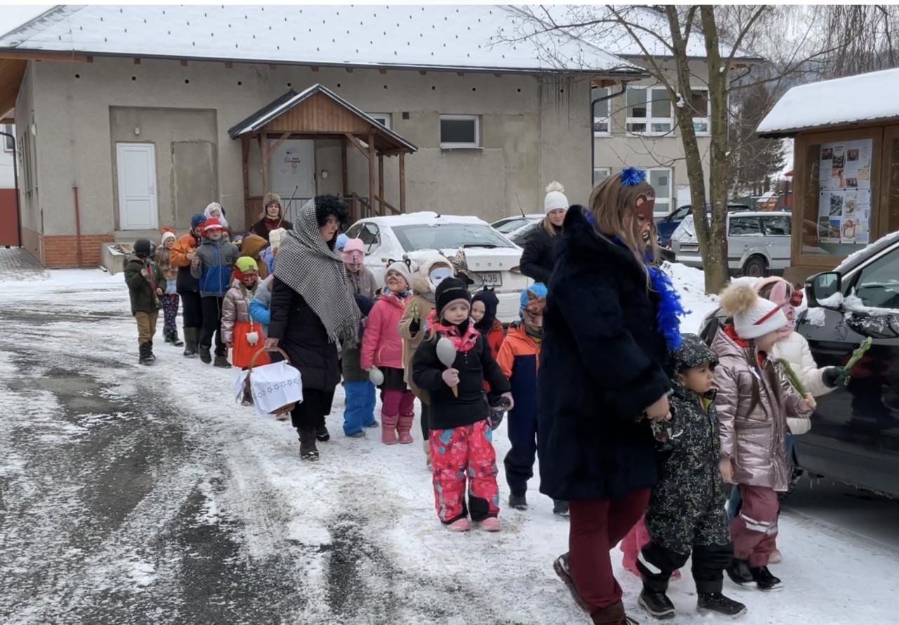 Průvod vyrazil od školy a postupně se zastavil na několika místech v obci. První kroky vedly ke školní jídelně, kde děti zazpívaly a předvedly krátké vystoupení. Odtud pokračovaly k obecnímu úřadu, kde je přivítali zaměstnanci úřadu. Nechyběla ani zastávka u místního obchodu, kde si děti vysloužily zasloužený potlesk.