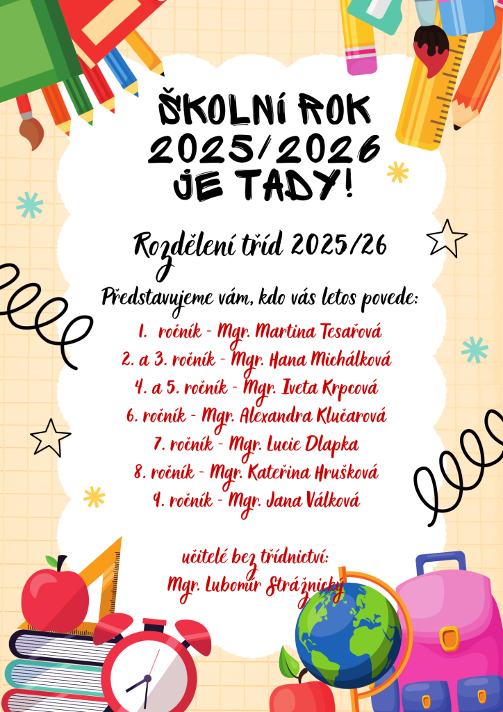 S radostí vám představujeme, kdo bude v novém školním roce 2025/26 vést naše třídy.