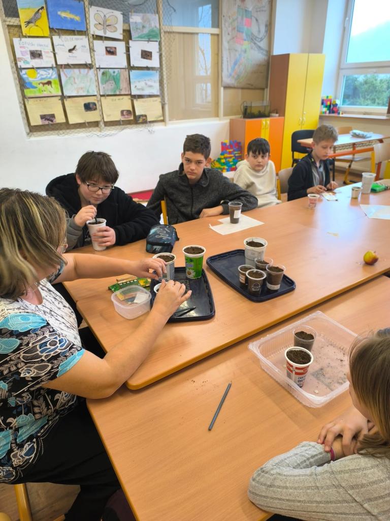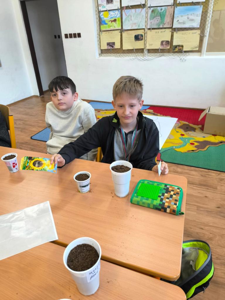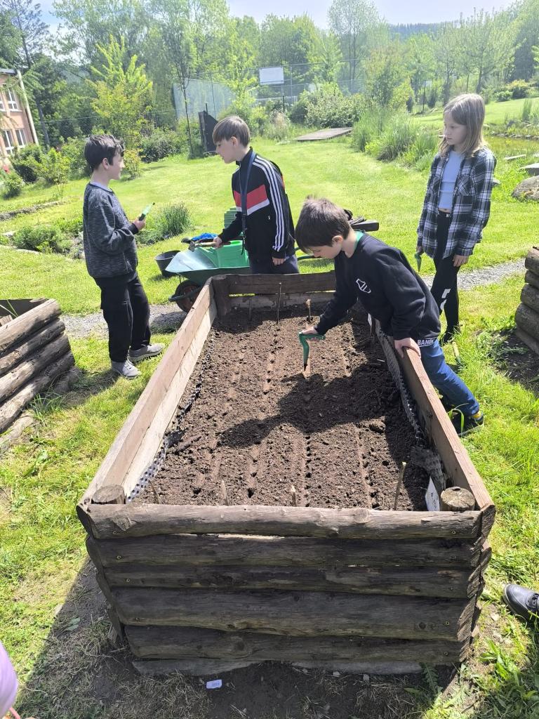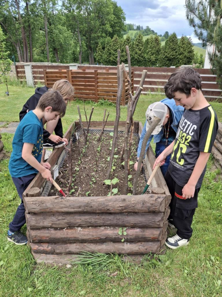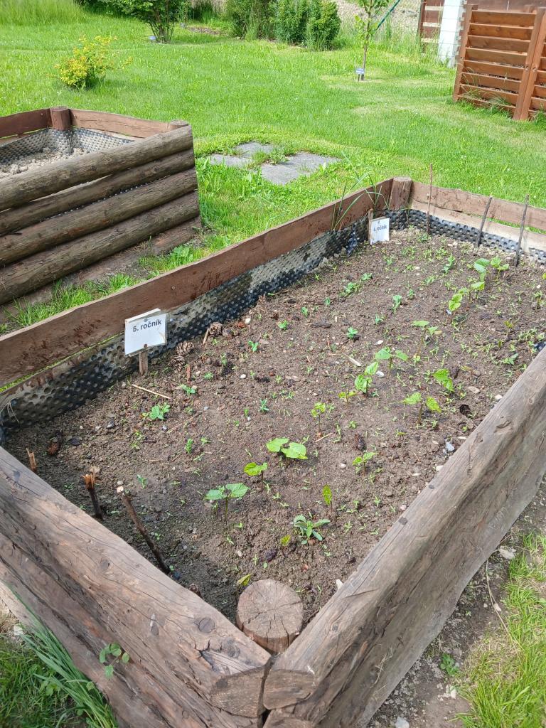 Děti tak měly možnost pozorovat, jak jednotlivé rostliny rostou, co potřebují ke svému vývoji a jak se o ně správně starat. Radost z práce navíc nesdílely jen samy – během června se u našich záhonů často zastavovali i rodiče, prarodiče a další návštěvníci školy, kteří s obdivem sledovali, jak se malým pěstitelům jejich úsilí daří a zahrada se den ode dne proměňuje.