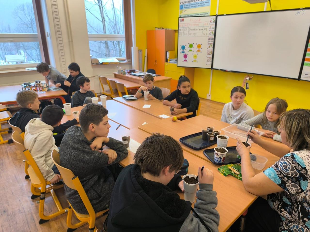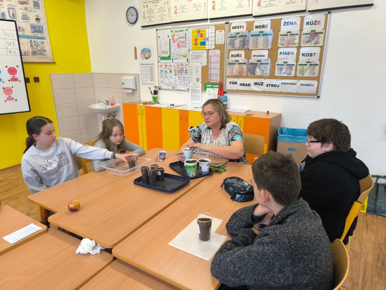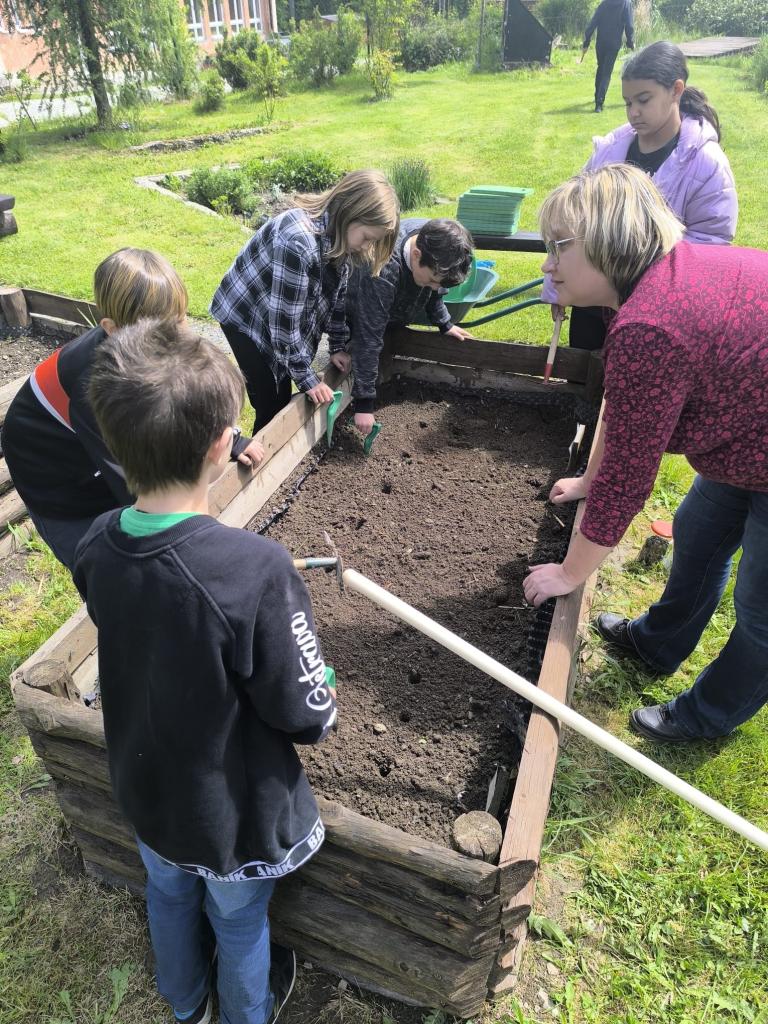 Děti tak měly možnost pozorovat, jak jednotlivé rostliny rostou, co potřebují ke svému vývoji a jak se o ně správně starat. Radost z práce navíc nesdílely jen samy – během června se u našich záhonů často zastavovali i rodiče, prarodiče a další návštěvníci školy, kteří s obdivem sledovali, jak se malým pěstitelům jejich úsilí daří a zahrada se den ode dne proměňuje.