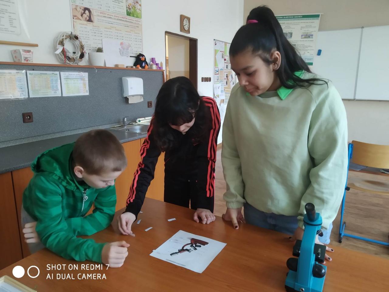 Žáci poznávali živé květiny, dále na obrázcích stromy, ptáky, ryby, obojživelníky a hady, bezobratlé živočichy a také horniny a nerosty. Nejtěžším úkolem bylo popisování mikroskopu. Další aktivita probíhala na školní zahradě Jeřabince, kde paní Blanka Drahotušská (lesní pedagog), připravila dětem informace na téma ptáci. Zábavné bylo sbírání žížal, ale také prohlížení vycpaných ptáků zblízka. Následující aktivitu měla každá skupina jinou. Nejmladší žáci se věnovali recyklaci, 4. -6. ročník nahlédl do nitra Země a nejstarší žáci se zabývali bateriemi. Počasí přálo i poslední aktivitě tohoto dne. Všechny třídy se svými třídními učiteli vyrazily uklízet Holčovice.