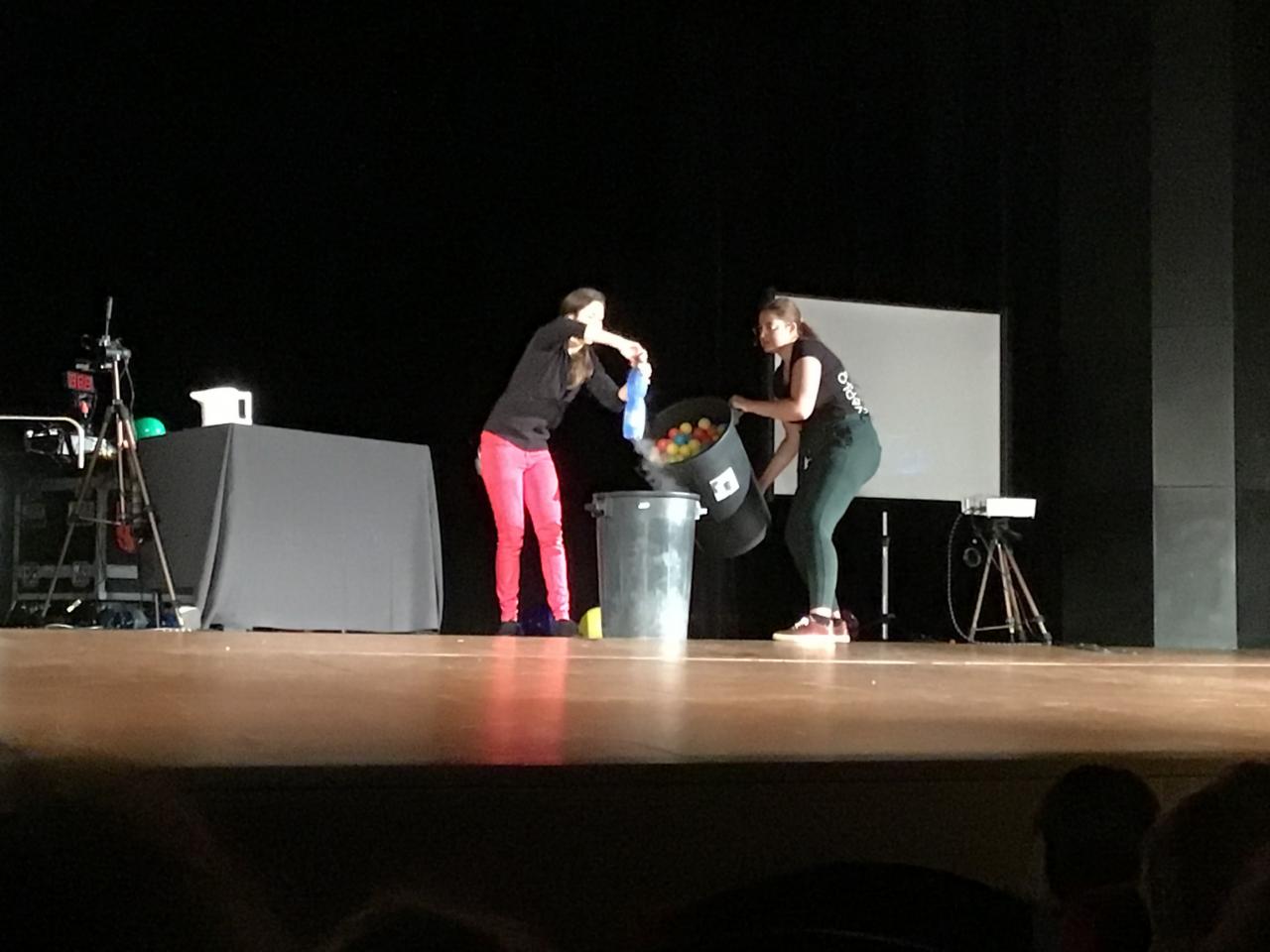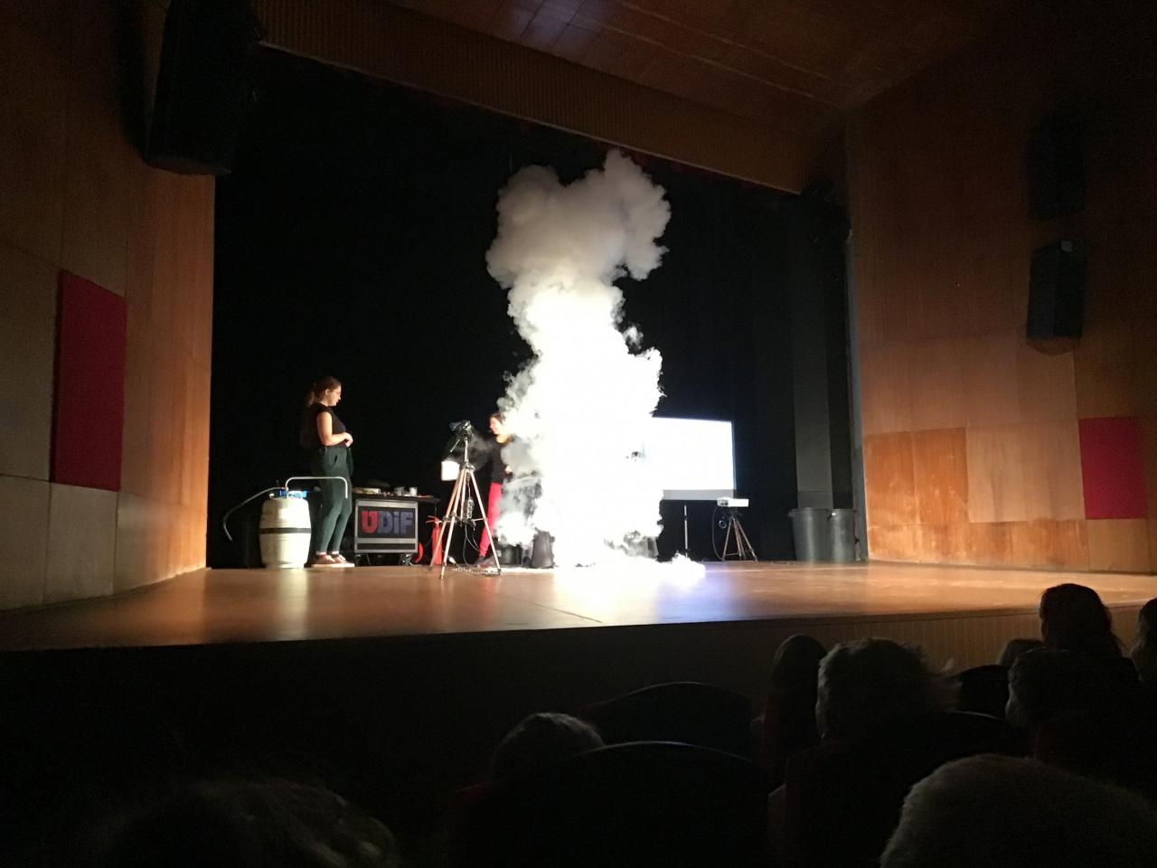 Při vystoupení zaměřeném na kapalný dusík zmrazily gumovou hadici, tenisový míček i svazek pažitky. Studentky dětem vysvětlily, jak funguje mazací propiska a že není vygumovaná nadobro. Na vlastní uši jsme slyšeli, proč není dobrý nápad dusík zavřít do uzavřené nádoby.